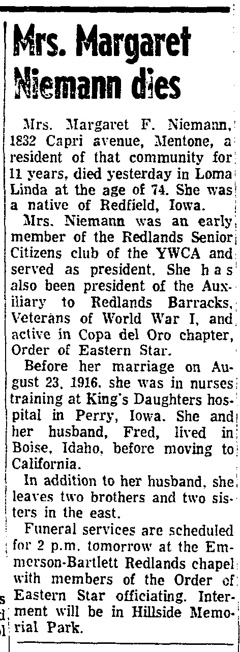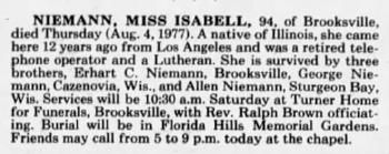 - Alice I. Niemann b. 3 Sep 1900, d. 16 Jul 2000