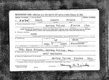 - [S6] Wisconsin, Wisconsin Vital Record to 1907, Reinhold H Friede born 12 Feb 1902 Sauk County Reel 265 Record 2561.