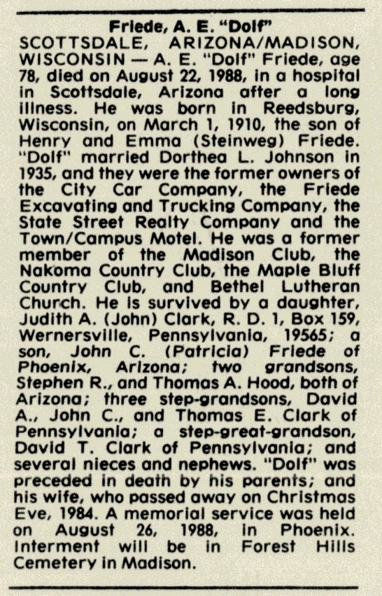 - Henry Albert Friede+ b. 1 Aug 1894, d. 12 Nov 1978