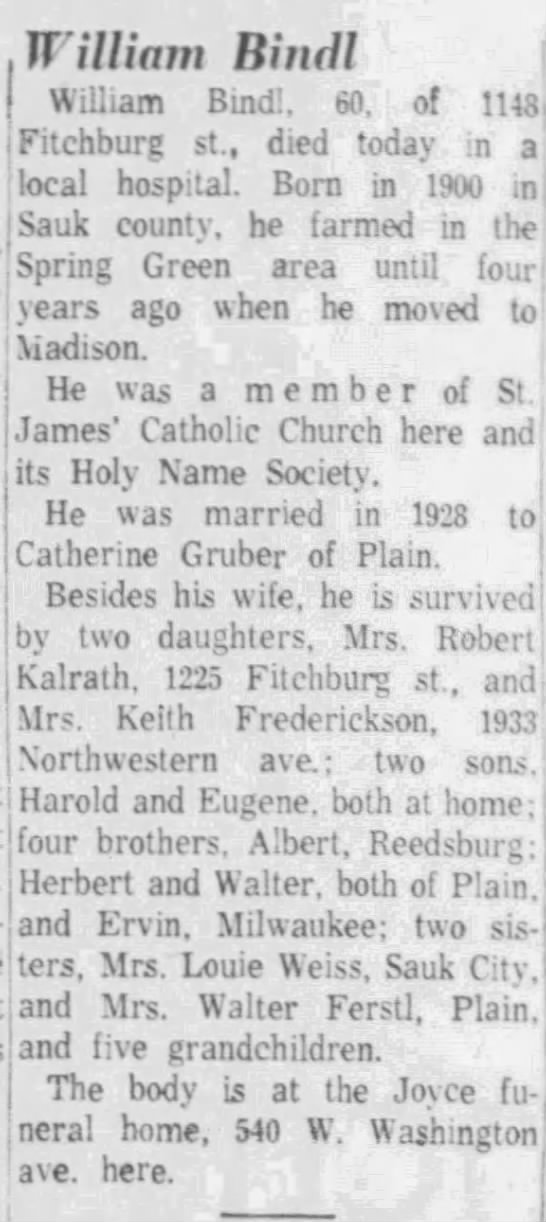 - Alvin J. Bindl b. c Dec 1929, d. 1931