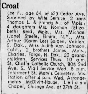 - Lee Francis Croal+ b. 1 Mar 1906, d. 28 Dec 1970