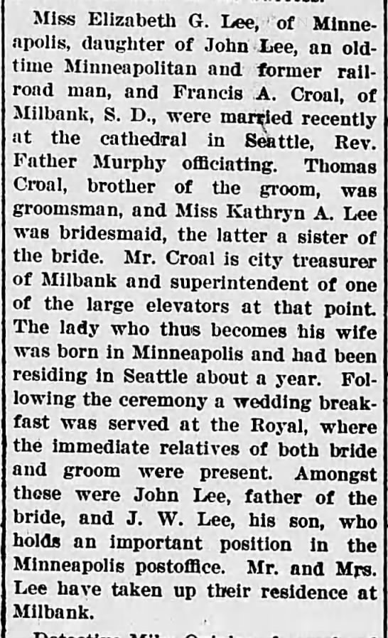 | Mother* | Theresa Genevieve Croal b. 15 Oct 1867, d. 25 Jan 1955 |
