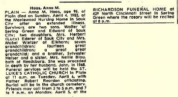 - Anna M. Heiser+ b. 12 Sep 1886, d. 4 Apr 1982