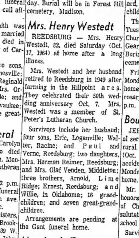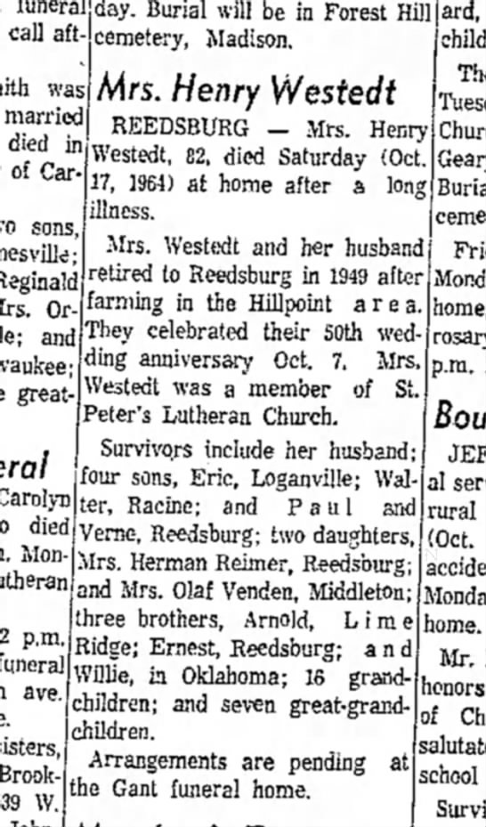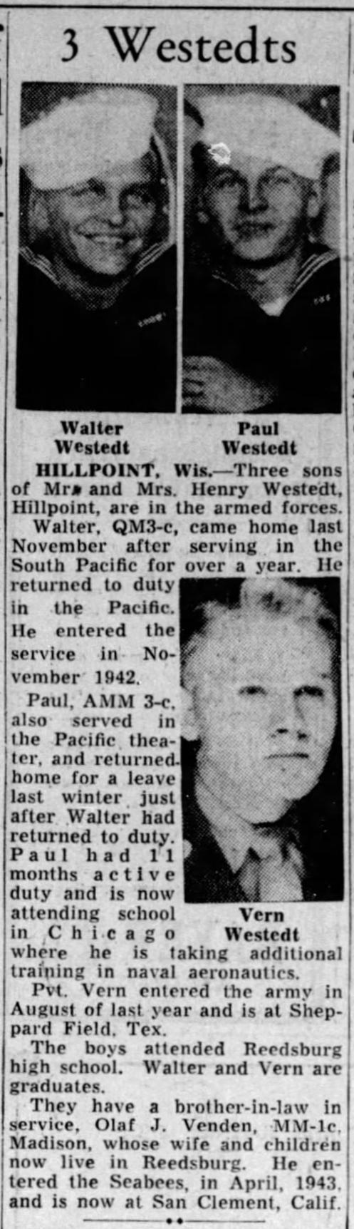 - Walter Edgar Westedt b. 16 May 1922, d. 29 Sep 2002