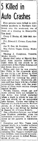 - [S373] U.S. Federal Census 1940 U.S. Federal Census, by Ancestry.com, Year: 1940; Census Place: Fresno, Fresno, California; Roll: T627_202; Page: 1A; Enumeration District: 10-54.