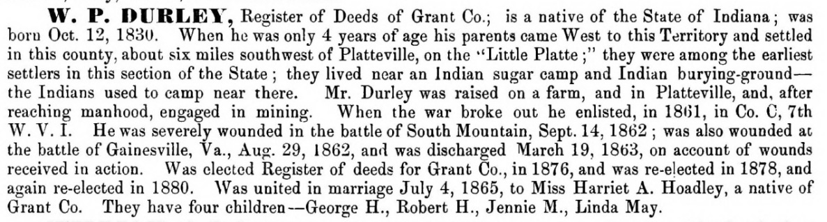 Children of William Perry Durley and Harriet Alzaline Hoadley