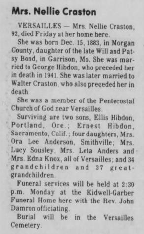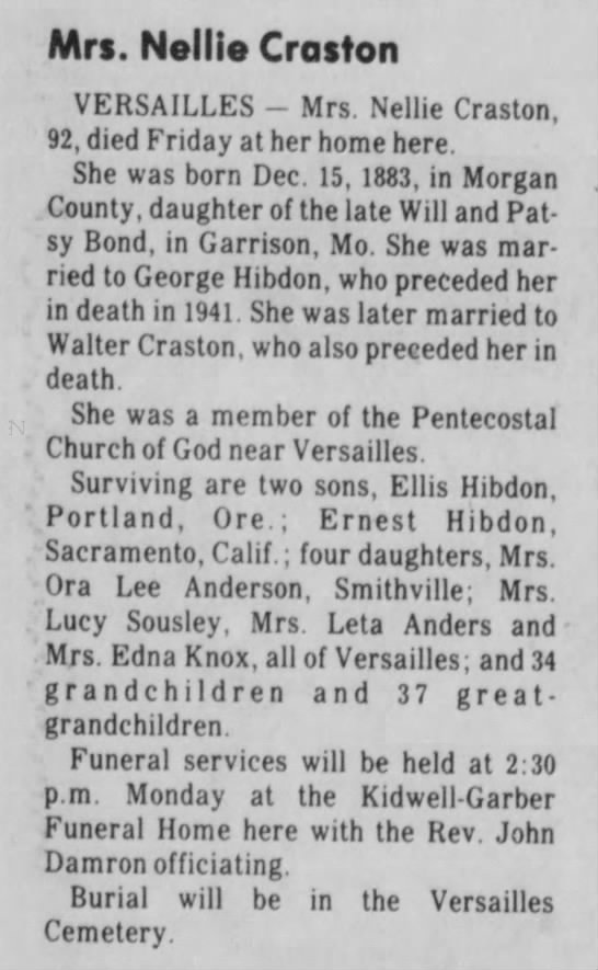 - Ora Lee Hibdon b. 2 Jun 1927, d. 12 Oct 1979