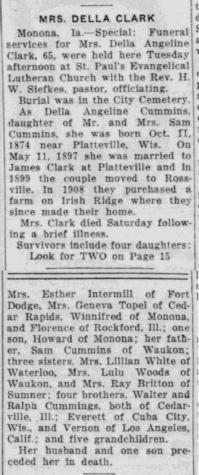 | Mother* | Della Angeline Cummins b. 11 Oct 1874, d. May 1940 |