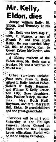 - Francis P. Kelly b. 23 Feb 1929, d. 17 Feb 1984