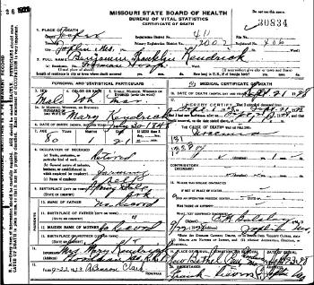 - [S357] Missouri Death Certificates, 1910 – 1955 (published).
