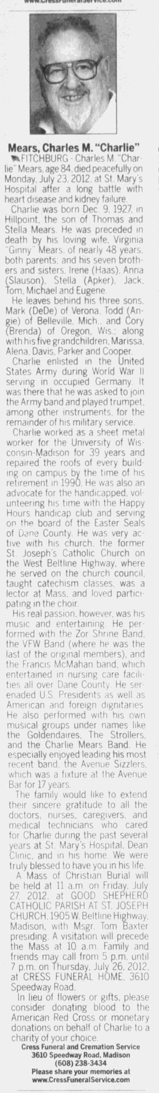 | Mother* | Johanna A. Mears b. 29 Dec 1890, d. 22 Dec 1967 |