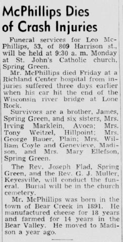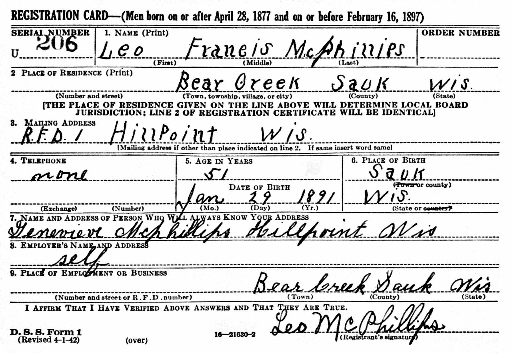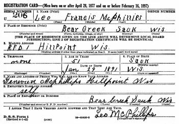 - [S373] U.S. Federal Census 1940 U.S. Federal Census, by Ancestry.com, Year: 1940; Census Place: Bear Creek, Sauk, Wisconsin; Roll: T627_4523; Page: 7A; Enumeration District: 56-9.