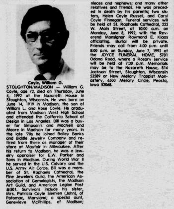 - William G. Coyle Jr. b. 14 Jun 1919, d. 4 Jun 1992