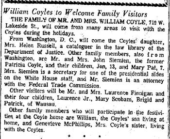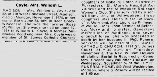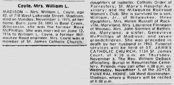 | Father* | William Leo Coyle b. 3 Nov 1891, d. 25 Jun 1963 |