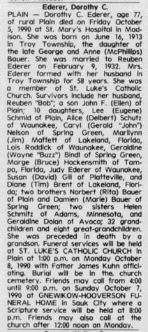 - [S373] U.S. Federal Census 1940 U.S. Federal Census, by Ancestry.com, Year: 1940; Census Place: Troy, Sauk, Wisconsin; Roll: T627_4523; Page: 8A; Enumeration District: 56-39.