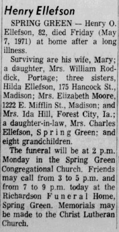 - Charles E. Ellefson b. 1917, d. Jan 1961