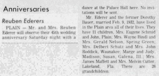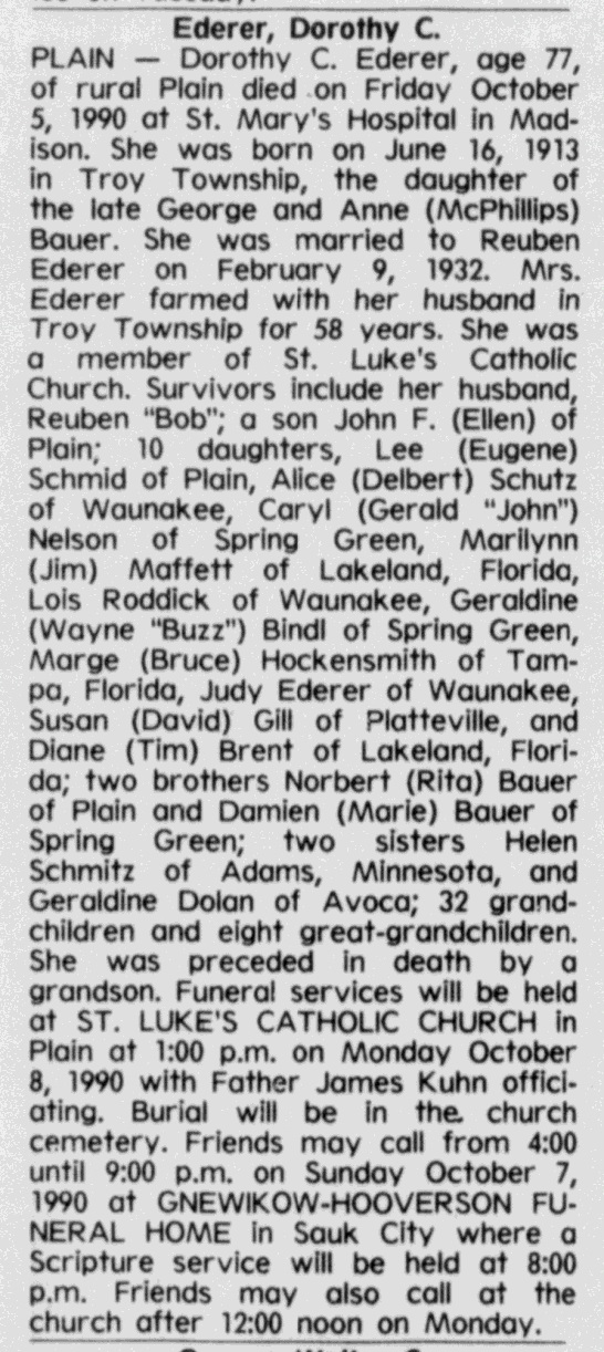 Children of Dorothy Catherine Bauer and Reuben John Ederer