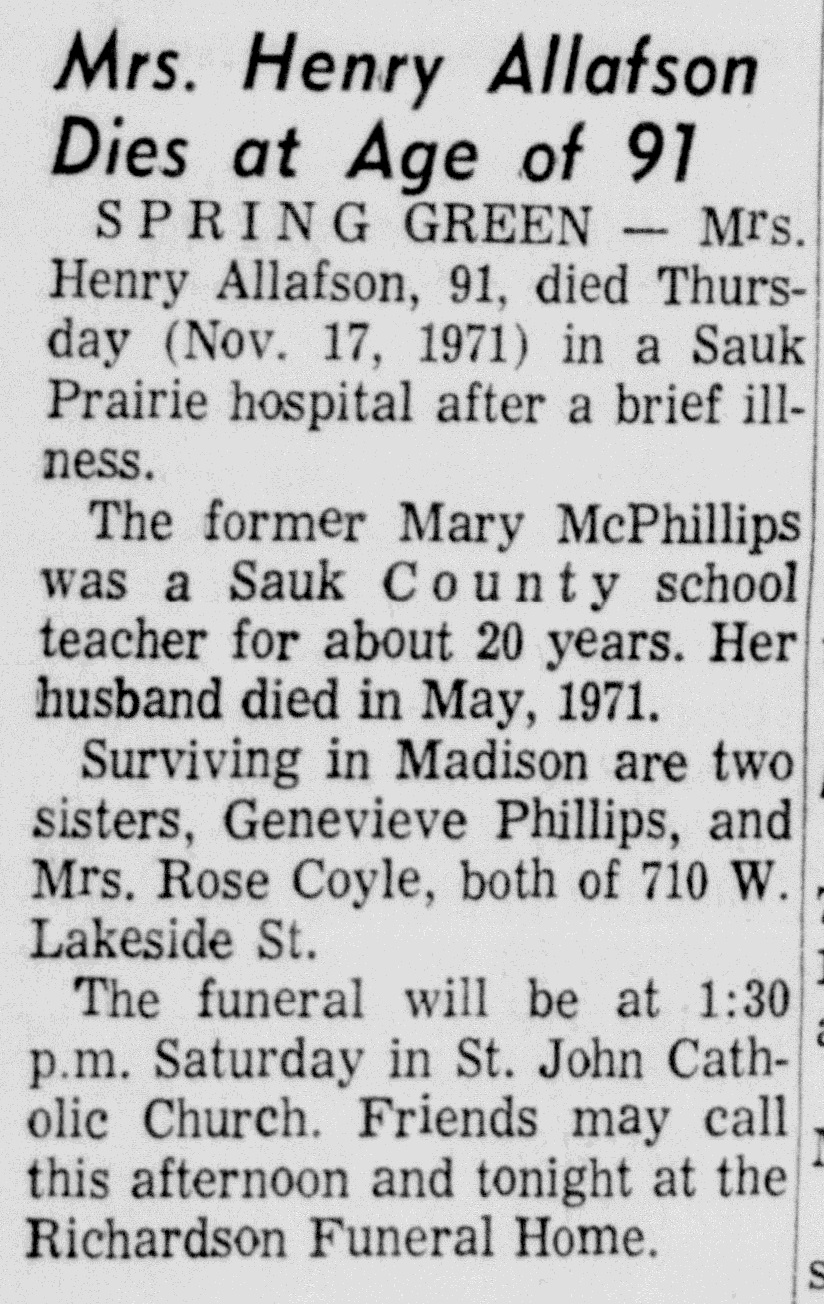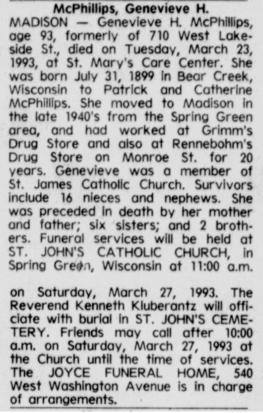 | Mother* | Rose A. McPhillips b. 24 Jun 1893, d. 3 Nov 1975 |