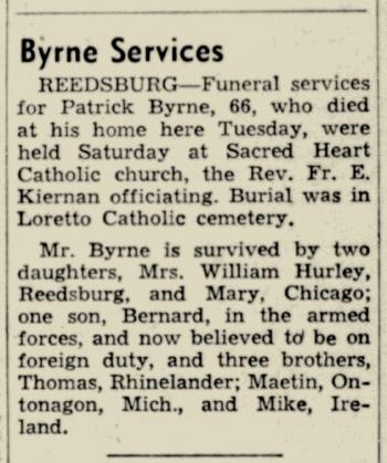- Bernard J. Byrne b. 2 Jan 1914, d. 8 Jul 1992
