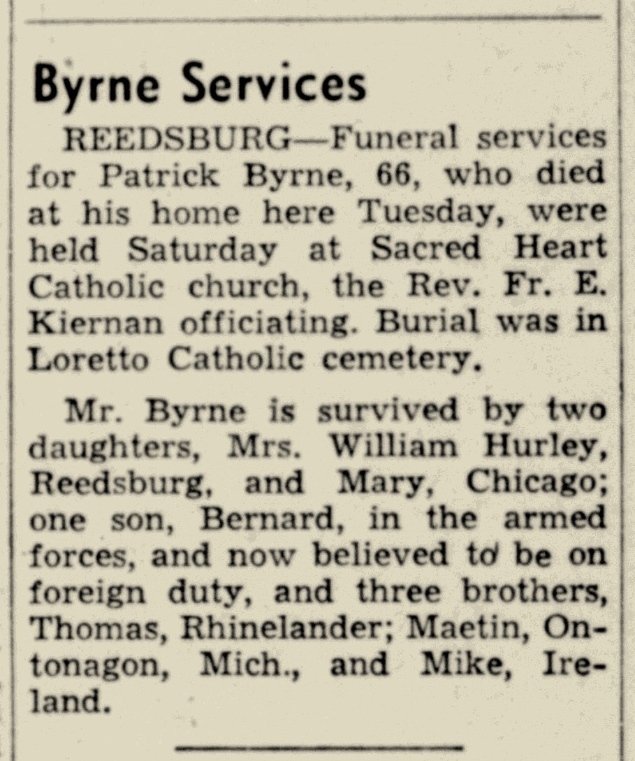 - Patrick Byrne+ b. 1876, d. Dec 1942