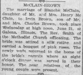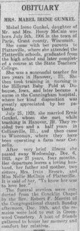 - Mabel I. McClain b. 5 Jul 1906, d. 7 Dec 1933