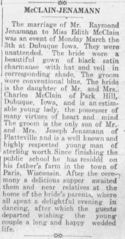 - [S243] U.S. Federal Census 1920 U.S. Federal Census, by Ancestry.com, Year: 1920;Census Place: South Lancaster, Grant, Wisconsin; Roll: T625_1988; Page: 3A; Enumeration District: 125; Image: 474.