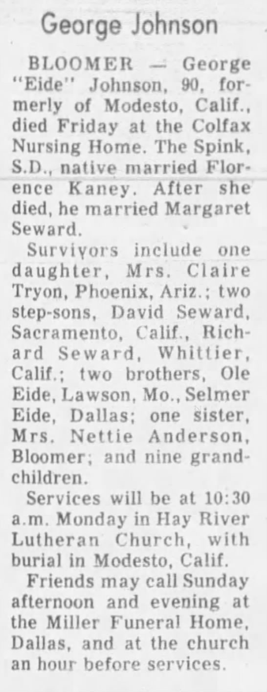 | Father* | George Martin Johnson b. 30 Sep 1888, d. 21 Jan 1977 |