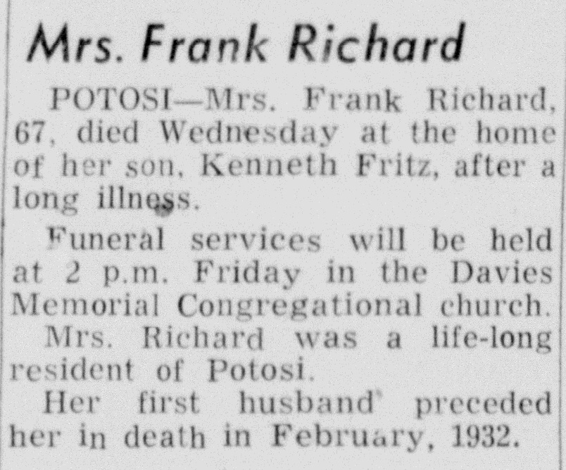 - Theresa Dorothy Richard b. 21 Feb 1884, d. 14 Nov 1952