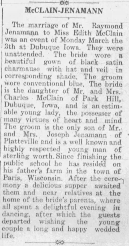 - [S245] U.S. Federal Census 1900 U.S. Federal Census, by Ancestry.com, Year: 1900; Census Place: Paris, Grant, Wisconsin; Page: 4A; Enumeration District: 47. Stamp 184B Dwelling 51.
