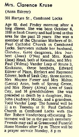 | Mother* | Rose V. Ederer b. 2 Mar 1895, d. 6 Jan 1982 |