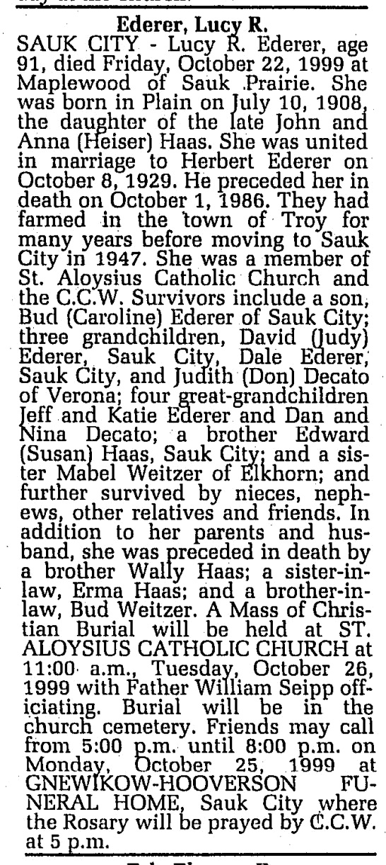 - Rose V. Ederer+ b. 2 Mar 1895, d. 6 Jan 1982