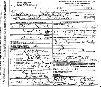 - [S357] Missouri Death Certificates, 1910 – 1955 (published).