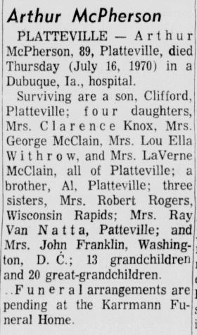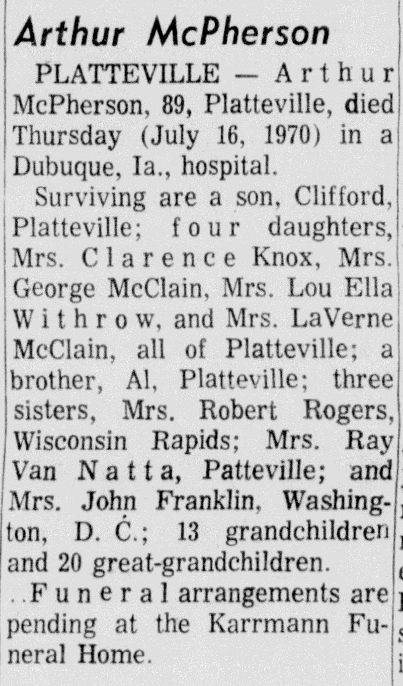 - Arthur Lee McPherson b. 28 Nov 1909, d. 8 Apr 1923