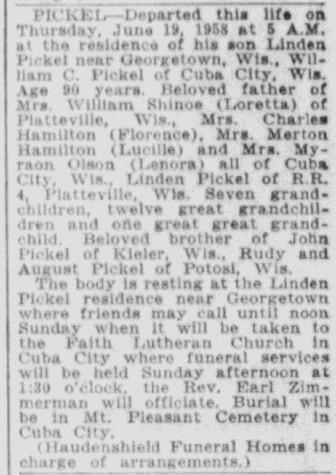 | Father* | William C. Pickel b. 1867, d. 19 Jun 1958 |