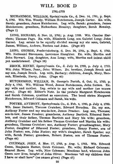 Children of Anthony Samuel Foster and Martha Taliaferro