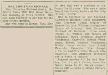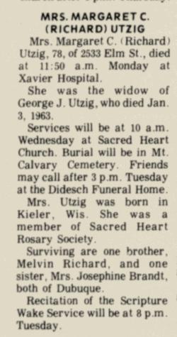- Margaret C. Richard b. Jun 1893, d. 3 Jan 1972