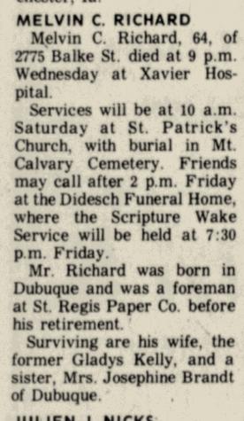 - Melvin Clarence Richard b. 8 Aug 1910, d. May 1975