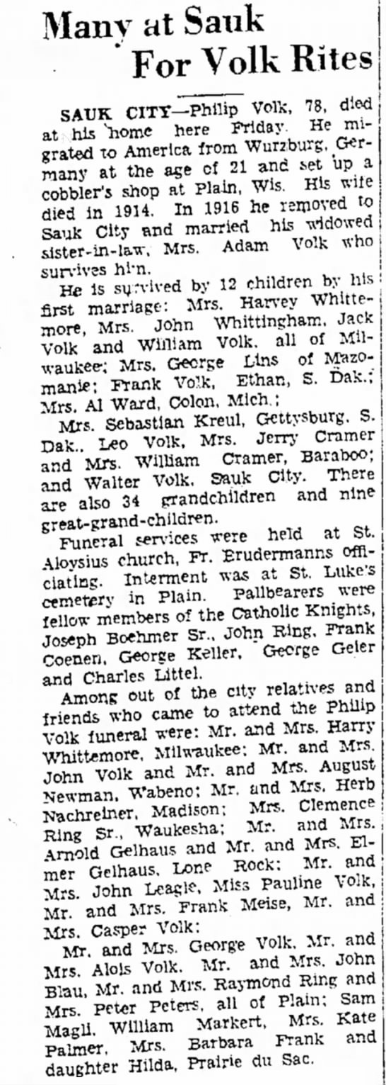 | Father* | Phillip Volk Sr. b. 1851, d. 29 Aug 1930 |