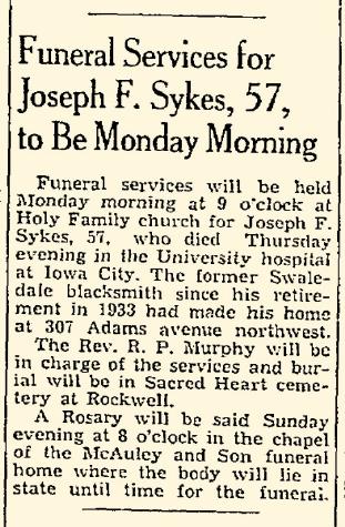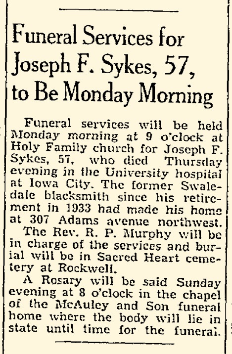 - [S373] U.S. Federal Census 1940 U.S. Federal Census, by Ancestry.com, Year: 1940; Census Place: Mason City, Cerro Gordo, Iowa; Roll: m-t0627-01146; Page: 12B; Enumeration District: 17-26.