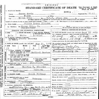 - [S244] U.S. Federal Census 1910 U.S. Federal Census, by Ancestry.com, Year: 1910; Census Place: Swaledale, Cerro Gordo, Iowa; Roll: T624_396; Page: 1B; Enumeration District: 0037; Image: 520; FHL Number: 1374409.