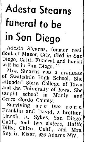 Children of Adesta M. Sykes and Dr. Willis Leroy Stearns