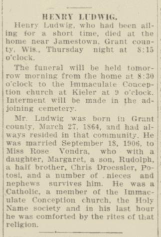 - Henry Ludwig b. 27 Mar 1864, d. May 1928