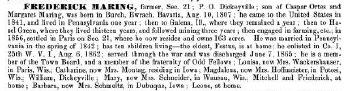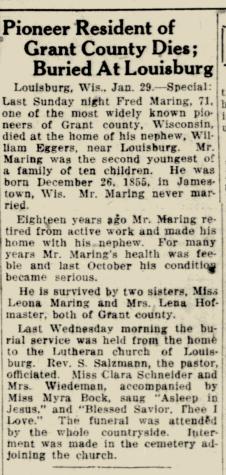 - John Frederick Maring b. 26 Feb 1855, d. 24 Jan 1927