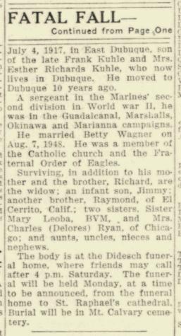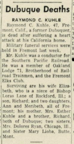 - Raymond C. Kuhle+ b. c 1913, d. Nov 1959