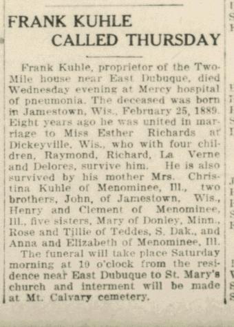 | Father* | Clements J. Kuhle b. c 1856, d. b 1918 |