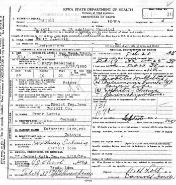 - Joseph Ludwig+ b. 14 Jan 1856, d. 20 Oct 1932