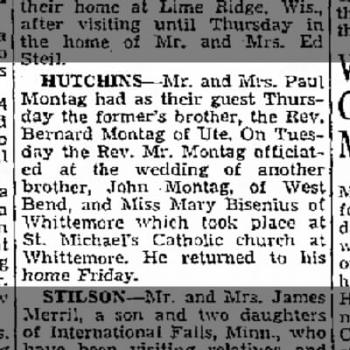 - Reverand Father Bernard J. Montag b. 6 Jan 1907, d. 30 May 2001