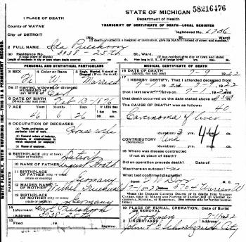 - [S243] U.S. Federal Census 1920 U.S. Federal Census, by Ancestry.com, Year: 1920; Census Place: Detroit Ward 12, Wayne, Michigan; Roll: T625_810; Page: 6B; Enumeration District: 359; Image: 1101.