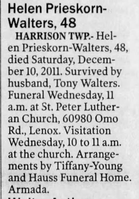 - Helen Prieskorn+ b. 15 Jan 1963, d. 10 Dec 2011