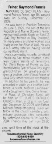 - [S373] U.S. Federal Census 1940 U.S. Federal Census, by Ancestry.com, Year: 1940; Census Place: Franklin, Sauk, Wisconsin; Roll: T627_4523; Page: 4A; Enumeration District: 56-14.